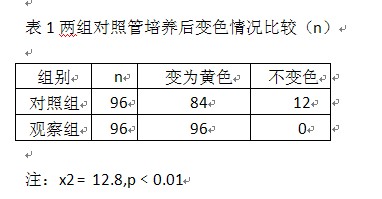2.1兩組對照管經培養(yǎng)后變色情況比較見表1